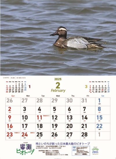 響灘ビオトープのオリジナルカレンダー引換券を進呈。11月17日(月)9時から(限定30部)、(若松区響町1丁目、電話093-751-2023)で。カレンダーの引き換え期間は12月17日(水)〜28日(日)(毎週火曜日は除く)。