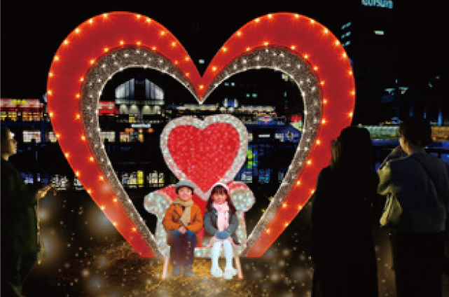 高さ4メートルの巨大ハートオブジェが登場!鷗外橋の光を背景に、温かくロマンチックな空間を演出します。