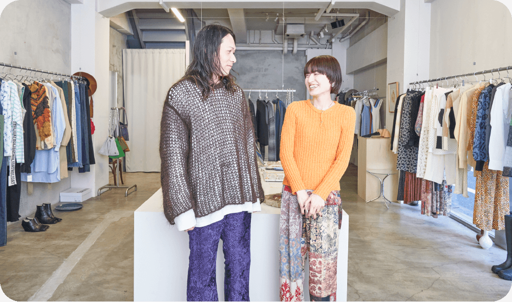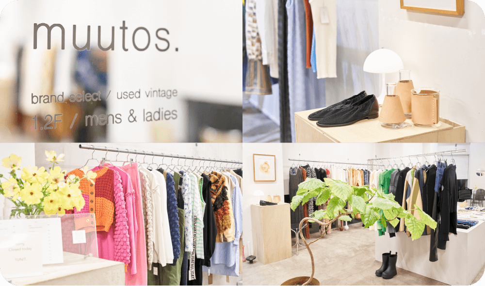 共に北九州市出身。2019年の12月、フィンランド語で「変化」という意味を持つファッションを中心とした複合ショップ『muutos.(ムートス)』をオープン。築60年以上の建物を1棟貸し切り、1階にレディース、2階にメンズを展開。ハイブランドの古着やヴィンテージ小物、リメイクアイテムの他、北九州市のアクセサリーブランドも取り扱う。