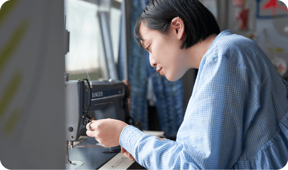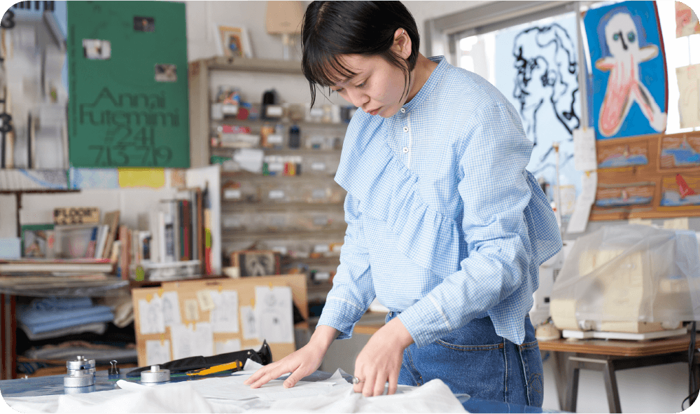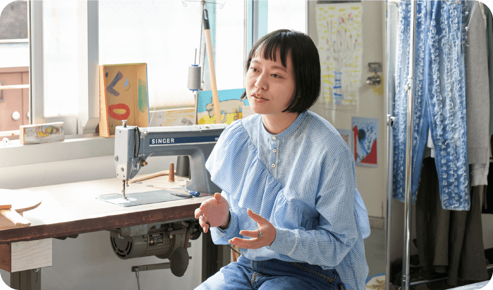 神奈川県生まれ。服飾専門学校を卒業後、東京を拠点とするファッションデザイナーのアシスタント経験。その後福岡県広川町の地域おこし協力隊として、「洋裁ができるコワーキングスペース」のオープンに尽力。北九州市に移住後は、黒田征太郎氏のアトリエにて創作活動を行っている。