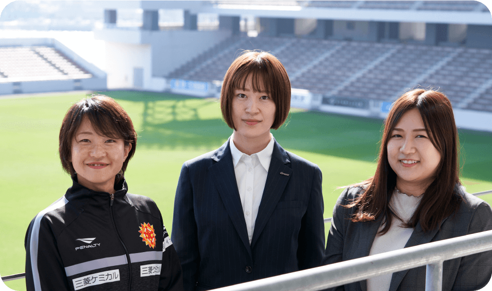 プロサッカークラブ スタッフ ギラヴァンツ北九州 さん (左)奥本 すみれ さん (中央)西村 望 さん (右)永由 杏 さん