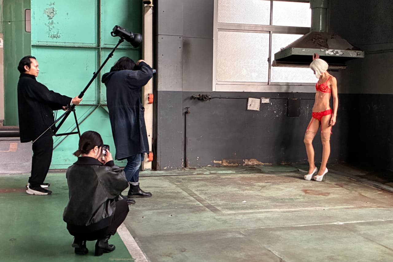 ランジェリー一つひとつに込めた想いを視覚的に表現するため、撮影にも「ものづくり」の視点を取り入れました。北九州市内の実際のものづくり現場を背景に、屋外での撮影を実施。