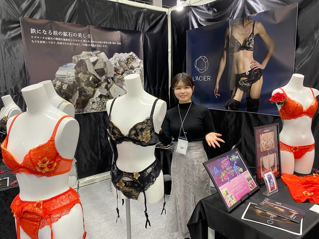 2月8日に小倉駅JAM広場で開催された「Action!Fes」において、完成したランジェリーとブランドビジュアル、ロゴマークを初披露しました。さらに、ブランドの世界観やランジェリーの魅力をより多くの方に届けるため、九州最大規模のビューティー見本市「ビューティーワールドジャパン福岡」に出展しました。