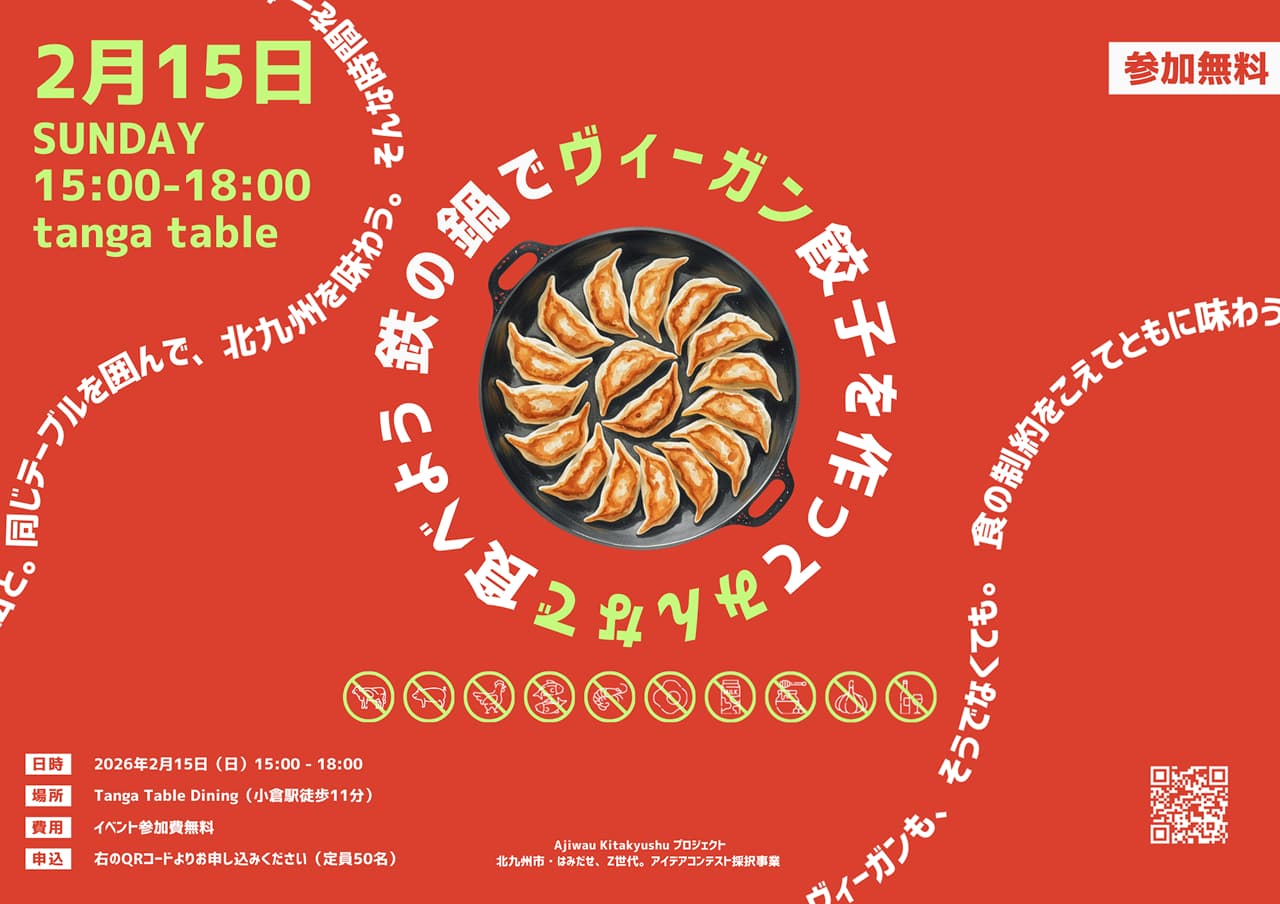 人と人、人と文化、地域と世界がつながる時間。ヴィーガンやベジタリアンなど食の制約があっても同じテーブルを囲めるインクルーシブな体験をつくるため、まず自分自身が、北九州の食文化や生産者の思いを学んでいきます!
